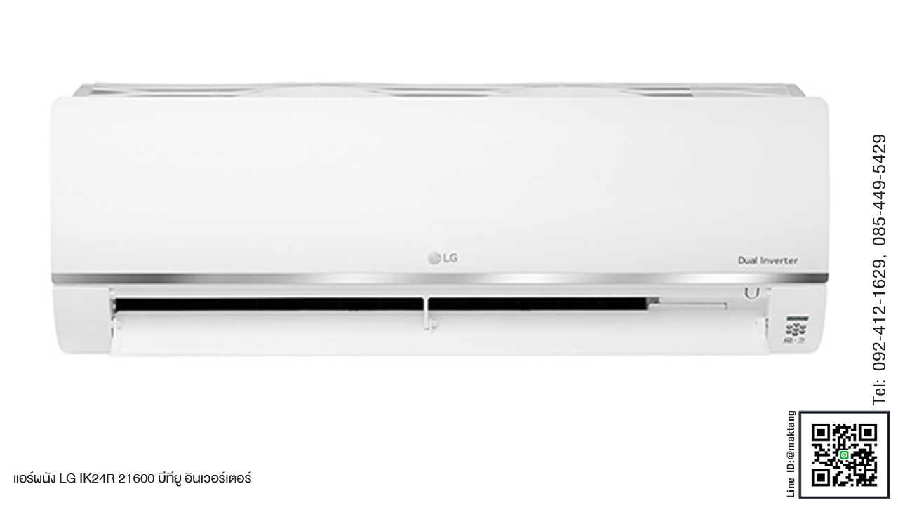 แอร์ 21000 BTU ยี่ห้อ LG รุ่น IK24R มีโปรแกรมที่เพิ่มพลังทำความเย็นด้วยระบบ Plasmaster lonizer Plus ที่ให้ความมั่นใจว่าห้องของคุณจะปราศจากเชื้อโรคสูงสุด 99 % ด้วยไอออนจำนวนกว่า 3000 ไอออน ที่ช่วยกำจัดแบคทีเรียและกลิ่นไม่พึงประสงค์ได้อยู่หมัดเลยค่ะ แอร์ของคุณเย็นเร็วขึ้น เพราะตัวแอร์จะเริ่มระบายความร้อนในห้องด้วยการทำความเย็นด้วยความเร็วสูงสุดด้วยระบบ DUAL Inverter Compressor  ขับเคลื่อนโดยเทคโนโลยี DUAL Inverter Compressor™ ที่มีความแข็งแรง ทนทาน และทำงานได้เงียบขึ้นด้วย ด้วยการรับประกันคอมเพรสเซอร์ 10 ปี มีระบบแผ่นกรองอากาศ ที่สามารถดักจับฝุ่นขนาดใหญ่ตั้งแต่ด่านแรก และกรองฝุ่นละเอียดได้ดีขึ้นในชั้นต่อมา ช่วยให้อากาศภายในห้องคุณสะอาดบริสุทธิ์มากขึ้นด้วยค่ะ มีระบบการทำความสะอาดภายในตัว ช่วยไล่ความชื้นต่าง ๆ ที่อยู่ภายในเครื่องแอร์โดยอัตโนมัติ ทำให้เครื่องสะอาดอยู่เสมอ