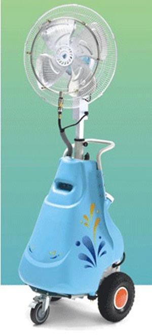 “พัดลมไอน้ำ” มีชื่อเรียกว่า mist fan หรือ fan fogger เป็นเทคโนโลยีที่ใช้การระเหยของละอองน้ำแบบฉับพลันเพื่อจับตัวกับความร้อนในอากาศ ช่วยลดอุณหภูมิความร้อนในพื้นที่การใช้งานหรือถ้าจะพูดให้เข้าใจง่ายก็คือเป็นพัดลมที่ใช้พ่นหมอกหรือละอองน้ำขนาดเล็กทั้งในและนอกอาคาร ซึ่งสามารถดัดแปลงเป็นรางพ่นไอน้ำได้ ให้ความเย็นสบายได้ในระดับหนึ่งเมื่อเทียบกับพัดลมให้ความเย็นทั่วไป