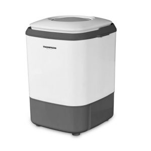 เครื่องซักผ้าเล็กรุ่นนี้จากยี่ห้อ Thompson ที่มีความจุถัง 4 กิโลกรัม สามารถซักและปั่นแห้งภายในถังเดียว บอกเลยว่าเหมาะมากสำหรับหอพักหรือคนโดที่มีเนื้อที่จำกัด เหมาะกับคนที่เร่งรีบและเหนื่อยกับการซักผ้าด้วยมือ ตัวถังทำมาจากพลาสติก PP มีความแข็งแรงทนทาน มีความโดดเด่นที่ระบบความปลอดภัย จึงทำให้มีราคาที่สูงกว่ายี่ห้ออื่น โดยเครื่องจะหยุดทำงานทันทีที่ฝาถังถูกเปิดออก เสียงไม่ดังมากขณะทำงาน แต่ในขั้นตอนการปั่นไม่ควรใส่ผ้ามากเกิน 2 กิโลกรัม ต้องคอยกดผ้าพร้อมกับครอบฝาให้แน่น ส่วนใหญ่จะเหมาะกับผ้าที่ไม่ค่อยหนามากนัก ราคาปกติ 3,995 บาท